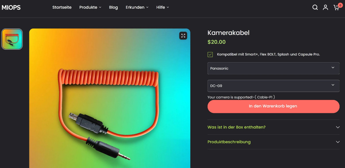 Meine Annahme ist daß der MIOPS Smart auch nur einen Kontakt schließt um die Kamera auszulösen.