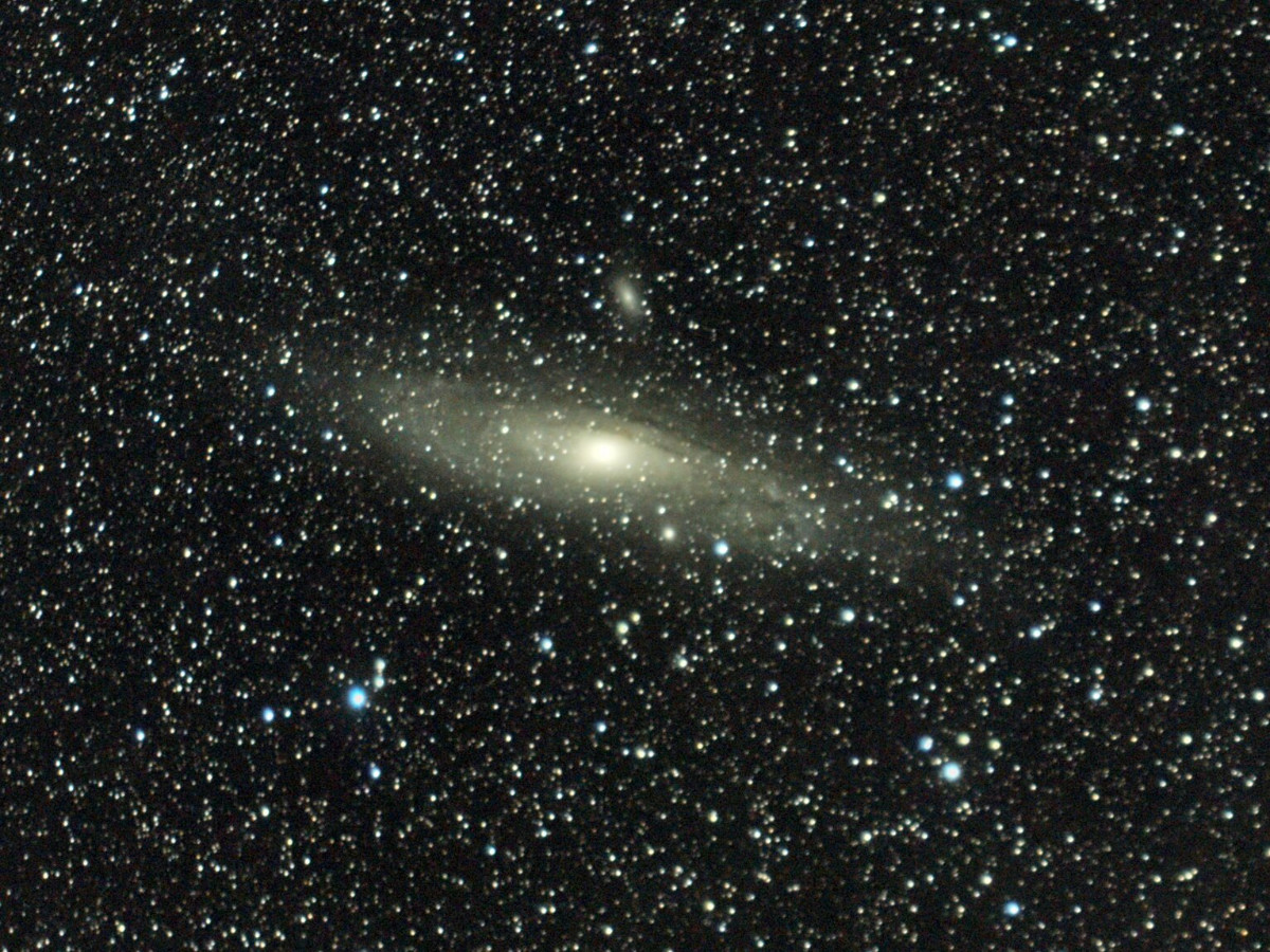 Mit bloßem Auge würde man übrigens nur 2-3 Lichtpunkte auf den Ausschnitt von meinem Foto sehen können. Andromeda selbst sieht man auch nur ganz schwach wenn man seine Augen lange genug der Dunkelheit anpasst.