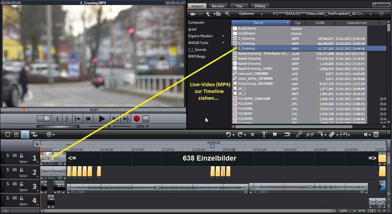 Clips in Magix ziehen,