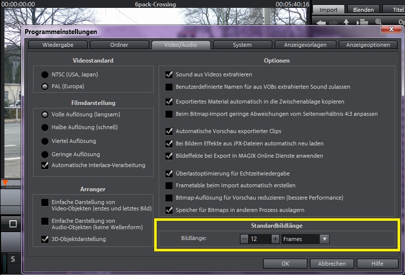- die Einstellungen Import/Export in Magix vornehmen